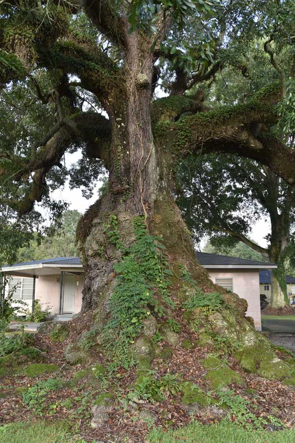 The Martin Tree—(See photos above as well) #1405 on the Live Oak Society registry, this tree was registered with a circumference of 34 feet by Ms. Delba E. Martin. She was born in 1906 and passed on in 1995. With help from the Ascension parish assessor’s office, I was able to locate the property that was once owned by Ms. Martin and the tree is still there.