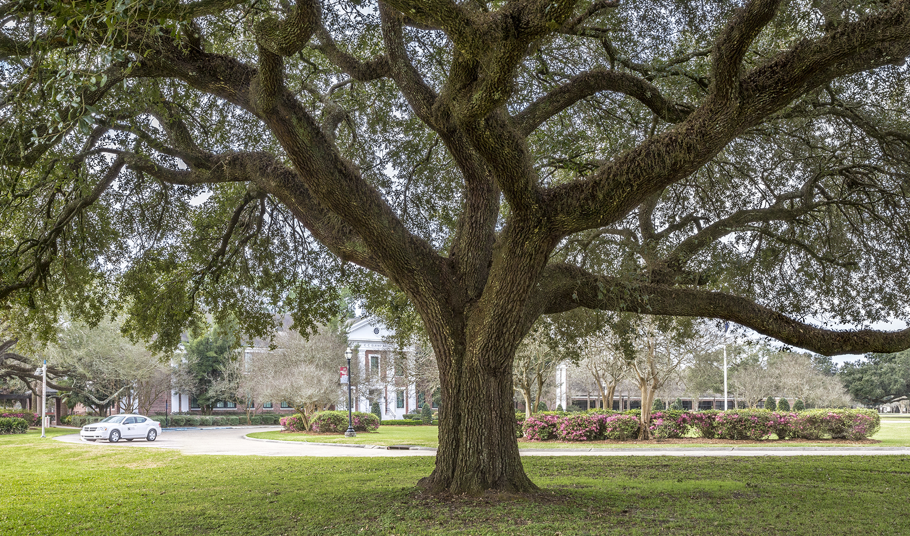 I first visited and photographed the John Hudson Oak in late 2015 while searching for live oaks in the 29′ to 30′-plus circumference size in the Ascension Parish area. The John Hudson Oak is located in Prairieville, LA at the Hudson House, a beautiful historic family home that’s been in the Hudson family for several generations.
