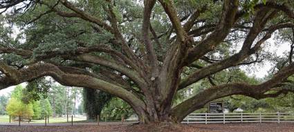 Older oaks with Spanish moss, at the front of the quarters allée, mid-day light